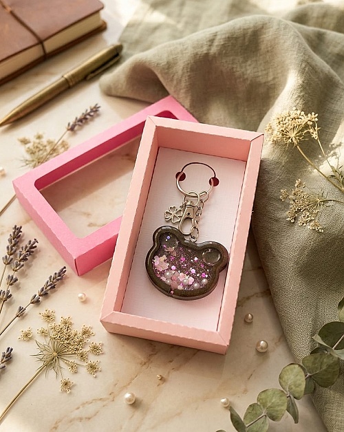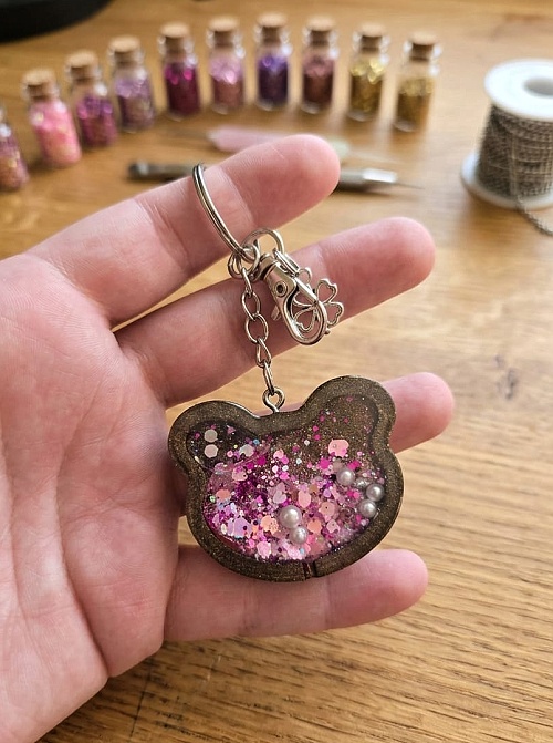 Magie v dlani, která nikdy nepřestane bavit! ✨ Tohle není jen obyčejný přívěsek, ale ručně vyráběný resin shaker. Co to znamená? Že se třpytky a perličky uvnitř jemně přelévají v tekutině přesně tak, jak hýbete rukou. 🧸