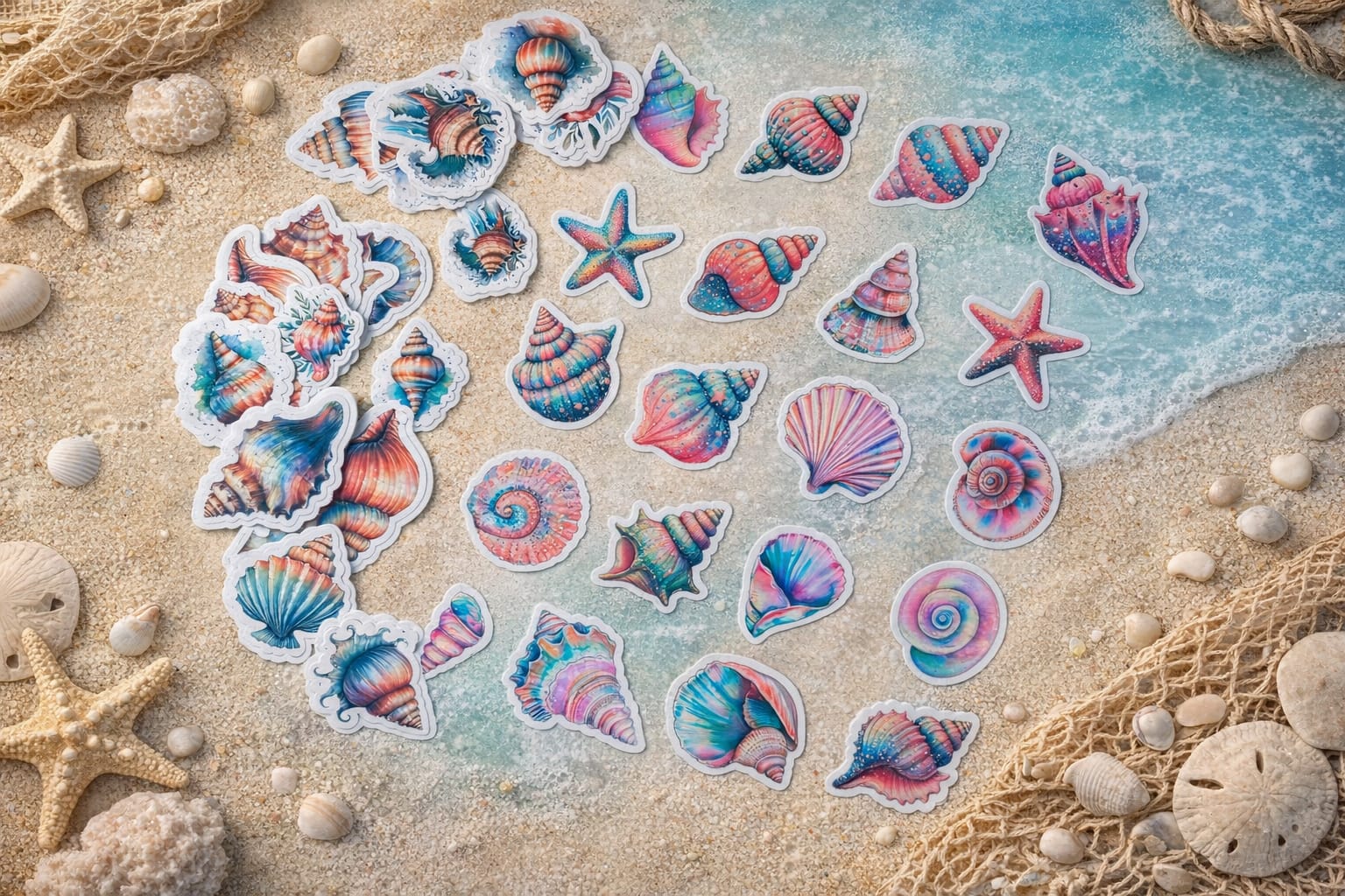 Přeneste si atmosféru léta a moře kamkoliv chcete. Tahle sada samolepek s motivy mušlí a hvězdic zaujme jemnými detaily a krásnými pastelovými barvami, které připomínají sluncem prohřátou pláž.